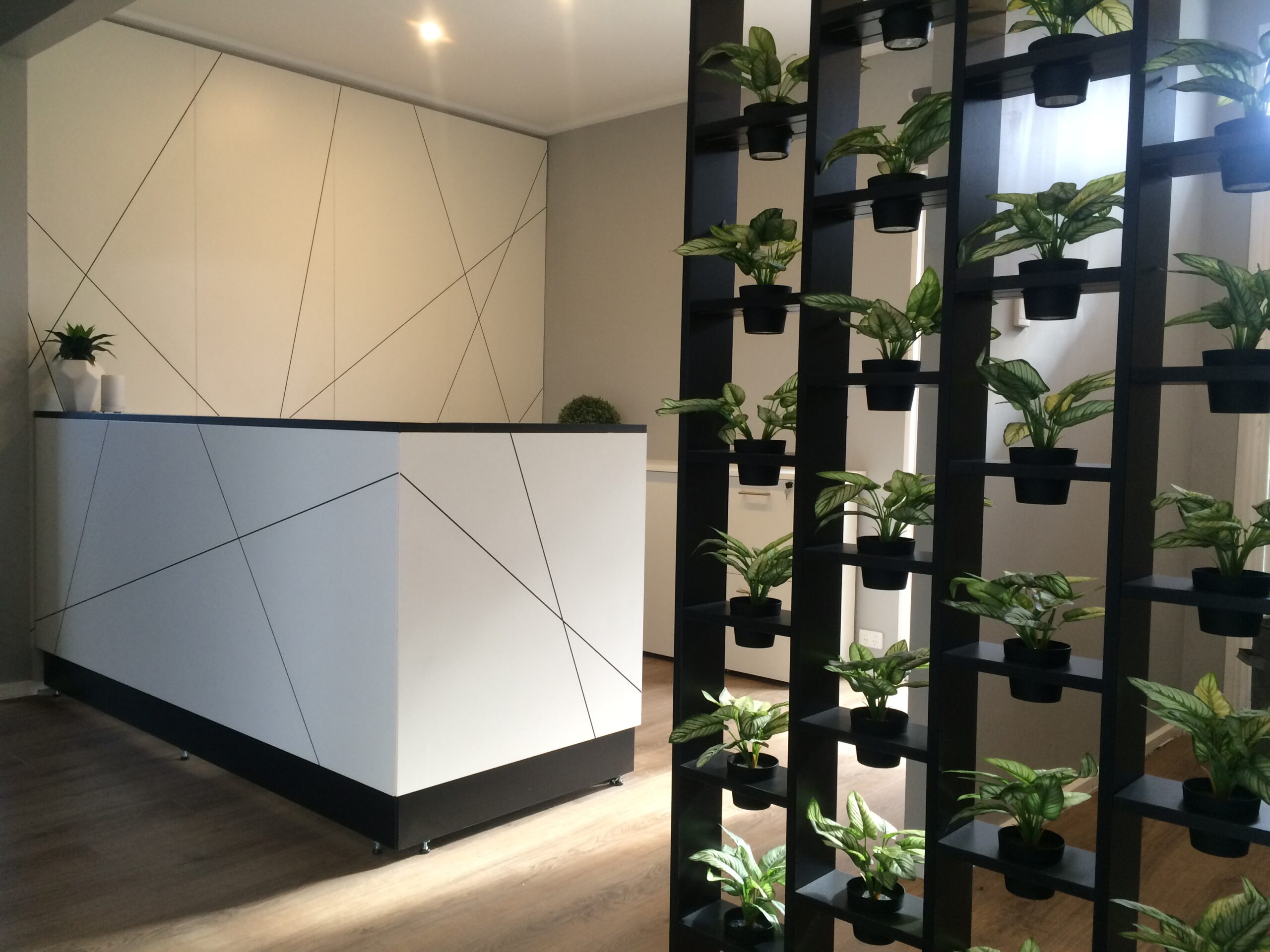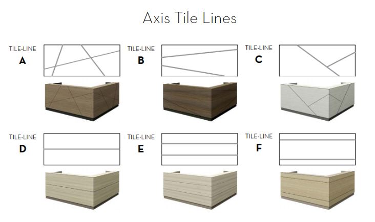 Axis modern reception desk provides clean minimal tile-lines option (A – F) that reflect a contemporary style,