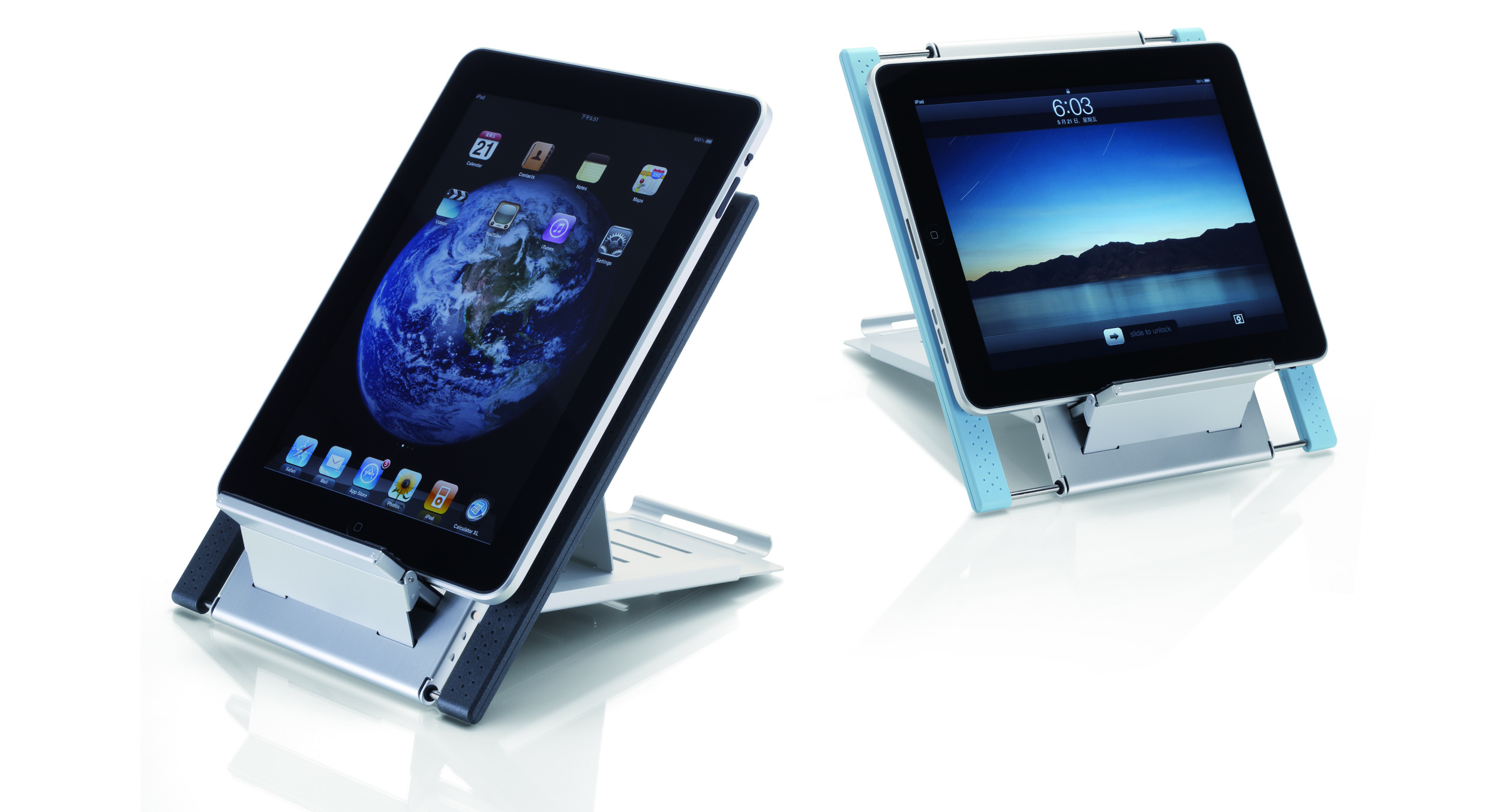 The Infinity Tablet/Laptop stand is a portable stand with adjustable angle settings, adjustable height settings and adjustable width settings.