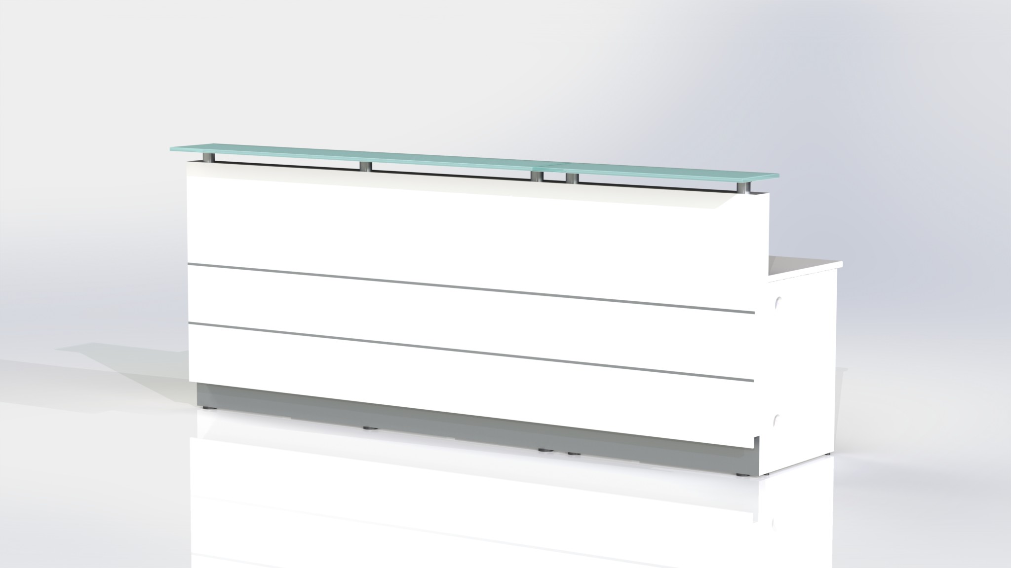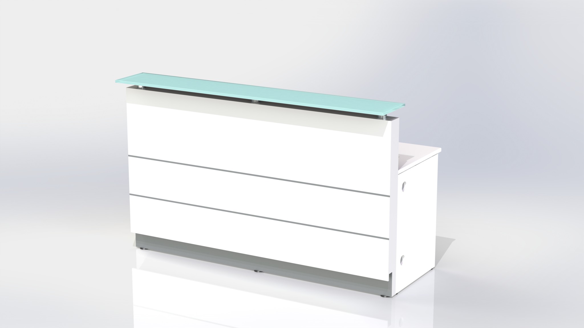 Counter Body:Â Finished in gloss white or metallic grey 2 pack paint, double aluminium strips and stainless steel kick plate.
